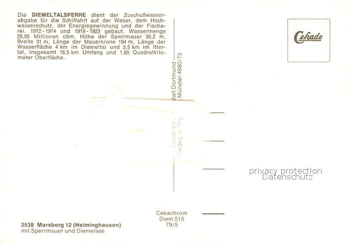 73091912 Marsberg Sauerland Fliegeraufnahme Sperrmauer Diemelsee postalisch nicht gelaufen Erhaltung siehe scans [KathaD81] KatCode: 11110005958024