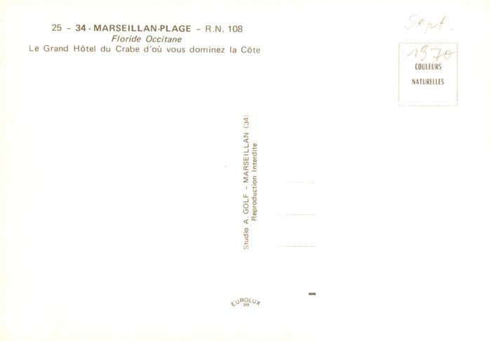 13881060 Marseillan-Plage 34 Herault Le GrandHotel du Crabe d’ouvous dominez la Cote postalisch nicht gelaufen Erhaltung siehe scans [WerneD78] Wern Katcode 11170034134032