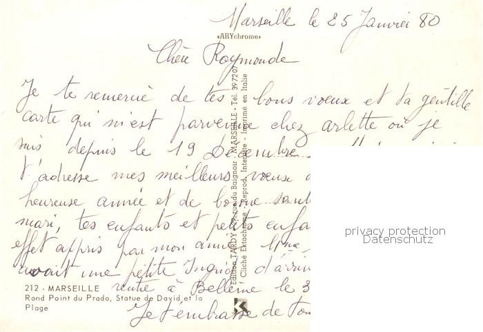 13846704 Marseille 13 Rond Point du Prado Statue de David et la Plage postalisch nicht gelaufen Erhaltung siehe scans [FriedD77] Frie Katcode 11170013313055