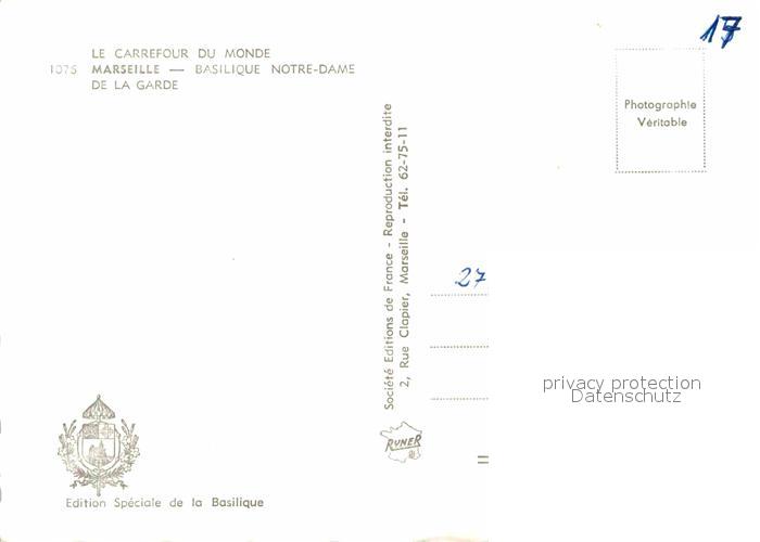 12755348 Marseille Bouches-du-Rhone Basilique Notre Dame de la Garde postalisch nicht gelaufen Erhaltung siehe scans [FriedD77] KatCode: 11170013313055