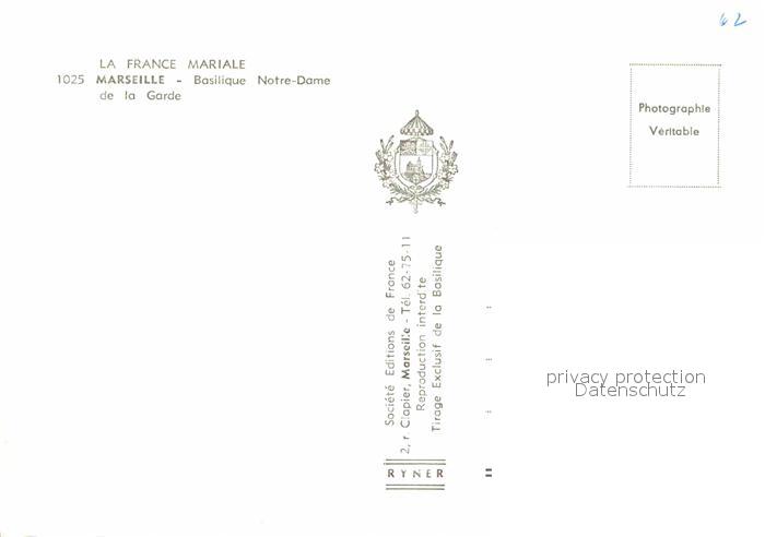 12755295 Marseille Bouches-du-Rhone Basilique Notre Dame de la Garde postalisch nicht gelaufen Erhaltung siehe scans [FriedD77] KatCode: 11170013313055