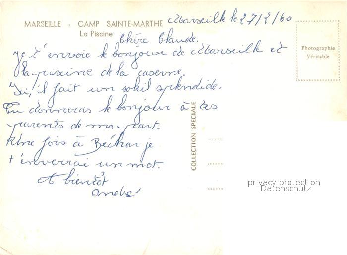 13583510 Marseille Bouches-du-Rhone Camp Sainte-Marthe Piscine postalisch nicht gelaufen Erhaltung siehe scans [PaolaD17] Paol Katcode 11170013313055