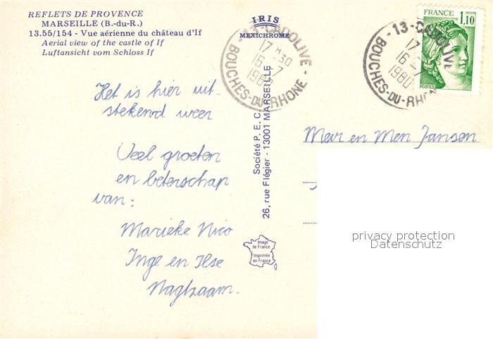 13161193 carte postale Marseille Bouches-du-Rhone Chateau d If vue aérienne postalisch gelaufen Erhaltung siehe scans [FriedD77] KatCode: 11170013313055