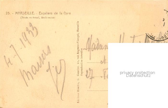 13507309 Marseille Bouches-du-Rhone Escaliers de la Gare postalisch nicht gelaufen Erhaltung siehe scans [FriedD77] Frie Katcode 11170013313055