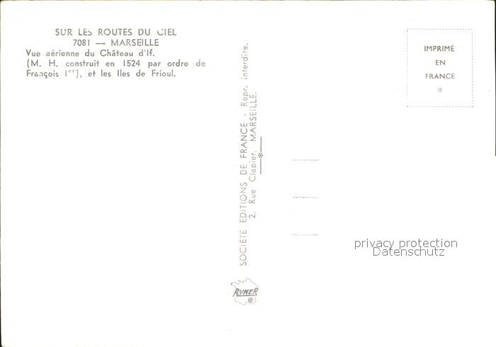 12294462 Marseille Bouches-du-Rhone Fliegeraufnahme Chateaud d`If postalisch nicht gelaufen Erhaltung siehe scans KatCode: 11170013313055