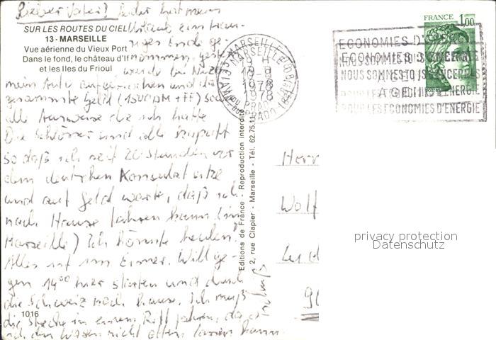 12264634 carte postale Marseille Bouches-du-Rhone Fliegeraufnahme mit Hafen et oees Ooeoees di Frioul postalisch gelaufen Erhaltung siehe scans KatCode: 11170013313055