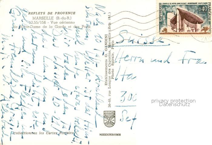 13337346 carte postale Marseille Bouches-du-Rhone Fliegeraufnahme Provence Notre Dame de la Garde et des Ports postalisch gelaufen Erhaltung siehe scans [LiesaD40] KatCode: 11170013313055