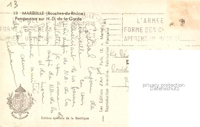 13539700 carte postale Marseille Bouches-du-Rhone Garde postalisch gelaufen Erhaltung siehe scans [LiesaD40] KatCode: 11170013313055