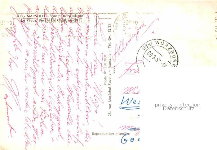 12698895 carte postale Marseille Bouches-du-Rhone Hafen Bucht Panorama postalisch gelaufen Erhaltung siehe scans [KathaD79] KatCode: 11170013313055