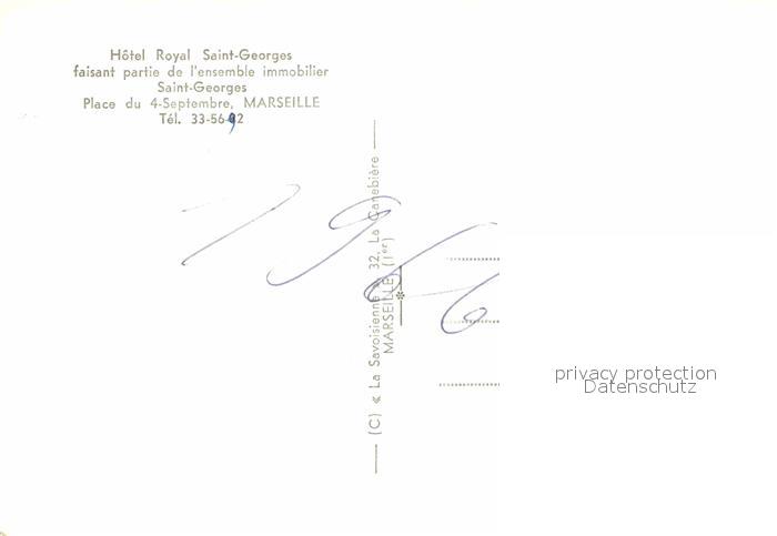 12790048 Marseille Bouches-du-Rhone Hotel Royal postalisch nicht gelaufen Erhaltung siehe scans [AndreD76] KatCode: 11170013313055