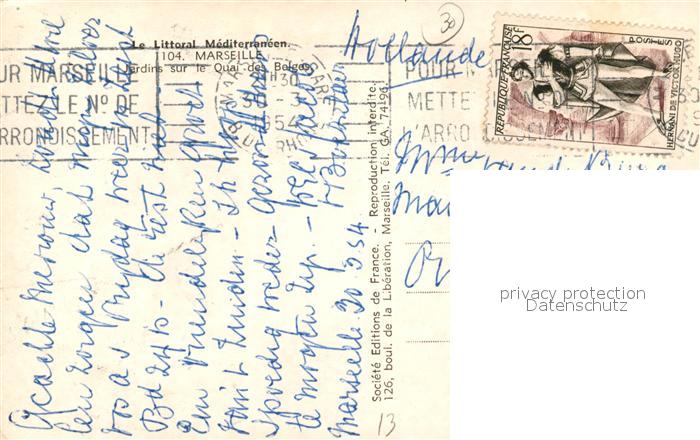 13493867 carte postale Marseille Bouches-du-Rhone Jardins sur le Quai des Belges postalisch gelaufen Erhaltung siehe scans [WerneD78] KatCode: 11170013313055