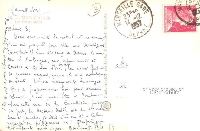 13493870 carte postale Marseille Bouches-du-Rhone La Canebiere postalisch gelaufen Erhaltung siehe scans [WerneD78] KatCode: 11170013313055