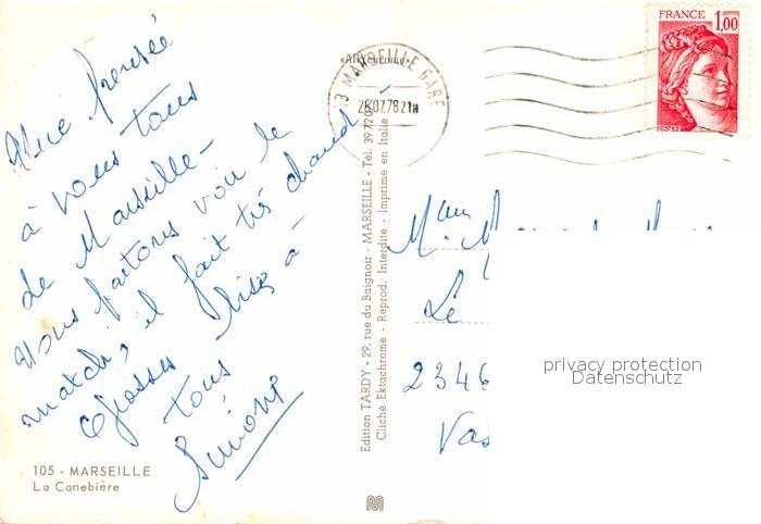 12662695 carte postale Marseille Bouches-du-Rhone La Canebiere postalisch gelaufen Erhaltung siehe scans [AndreD76] KatCode: 11170013313055