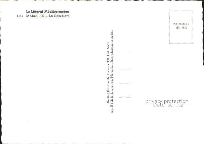 12601646 Marseille Bouches-du-Rhone La Canebiere postalisch nicht gelaufen Erhaltung siehe scans [LiesaD40] KatCode: 11170013313055