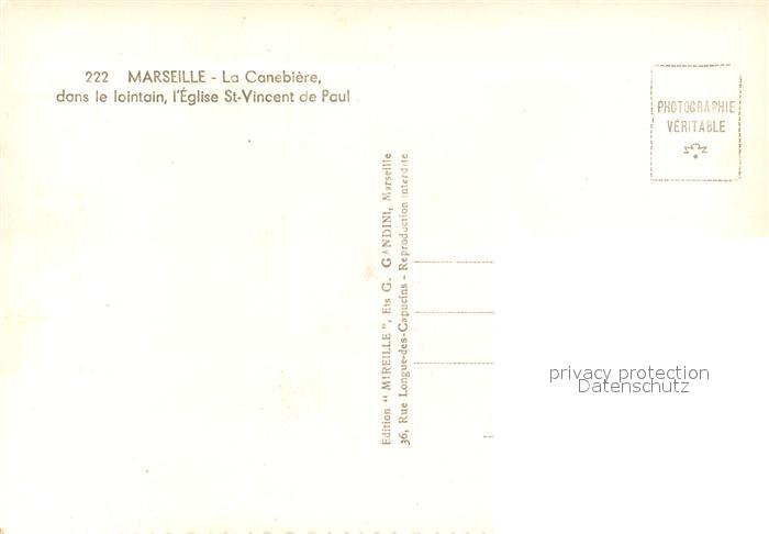 13582479 Marseille Bouches-du-Rhone La Canebiere dans le lointain l’Eglise St Vincent de Paul postalisch nicht gelaufen Erhaltung siehe scans [WerneD78] Wern Katcode 11170013313055