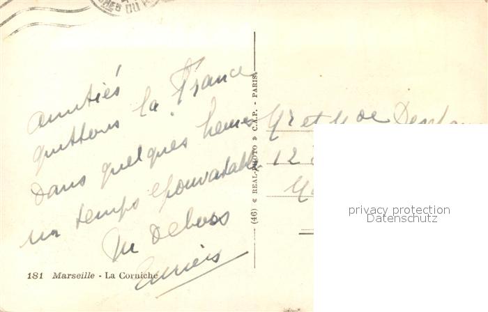 13513735 carte postale Marseille Bouches-du-Rhone La Corniche postalisch gelaufen Erhaltung siehe scans [FriedD77] KatCode: 11170013313055