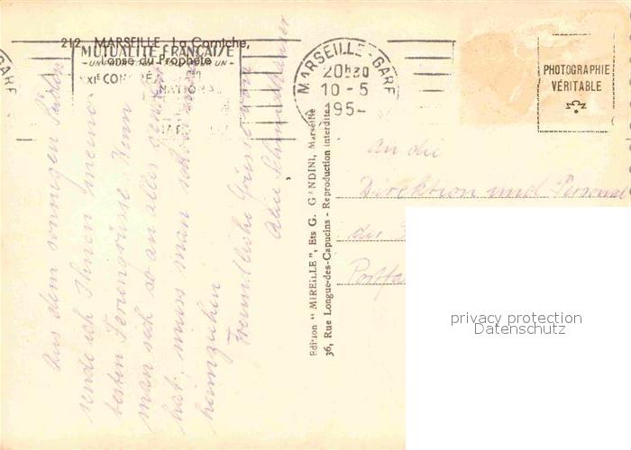 12700330 carte postale Marseille Bouches-du-Rhone La Corniche postalisch gelaufen Erhaltung siehe scans [AndreD76] KatCode: 11170013313055