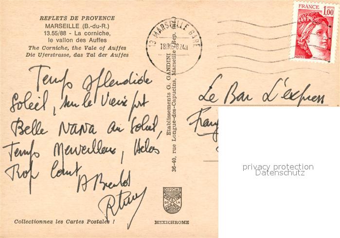 13573044 carte postale Marseille Bouches-du-Rhone La corniche le vallon des Auffes postalisch gelaufen Erhaltung siehe scans [WerneD78] KatCode: 11170013313055