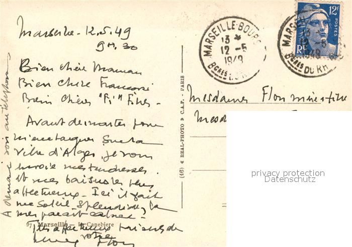 13581428 carte postale Marseille Bouches-du-Rhone Le Canebiere postalisch gelaufen Erhaltung siehe scans [WerneD78] KatCode: 11170013313055