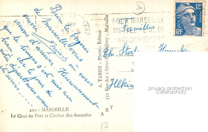13493868 carte postale Marseille Bouches-du-Rhone Le Quai du Port et Clocher des Accoules postalisch gelaufen Erhaltung siehe scans [WerneD78] KatCode: 11170013313055