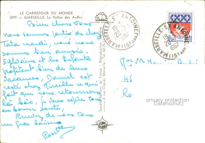 12328988 carte postale Marseille Bouches-du-Rhone Le Vallon des Auffes postalisch gelaufen Erhaltung siehe scans KatCode: 11170013313055