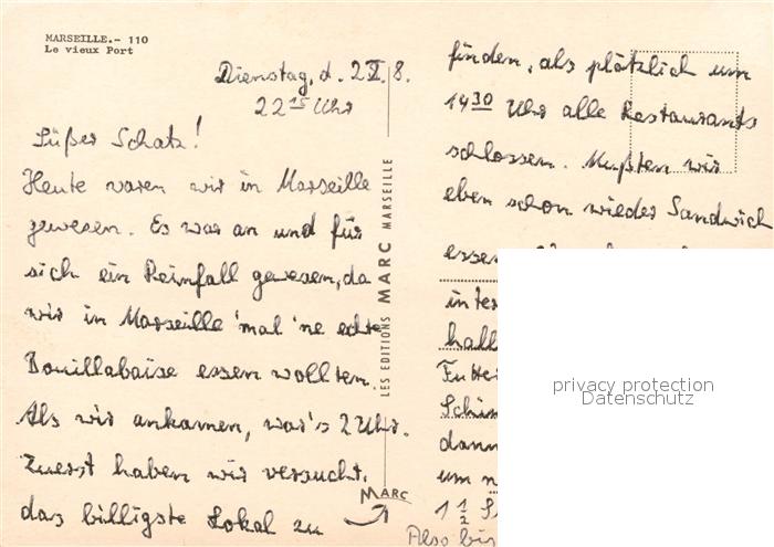 13143972 carte postale Marseille Bouches-du-Rhone Le vieux Port postalisch gelaufen Erhaltung siehe scans [WerneD78] KatCode: 11170013313055