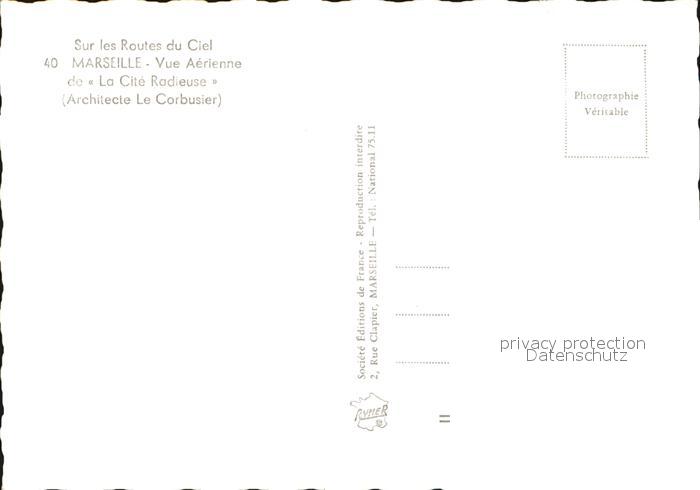 12538807 Marseille Bouches-du-Rhone Luftaufnahme La Cite Radieuse postalisch nicht gelaufen Erhaltung siehe scans [KathaD75 dp141box] KatCode: 11170013313055