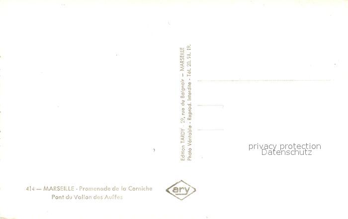 13534260 Marseille Bouches-du-Rhone Promenade de la Corniche Pont du Vallon des Auffes postalisch nicht gelaufen Erhaltung siehe scans [WerneD78] KatCode: 11170013313055