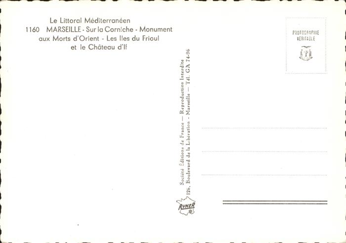 11533093 Marseille Bouches-du-Rhone Sur la Corniche Monument aux Morts d_Orient Les Iles du Frioul et Chateau d’If KatCode 11170013313055