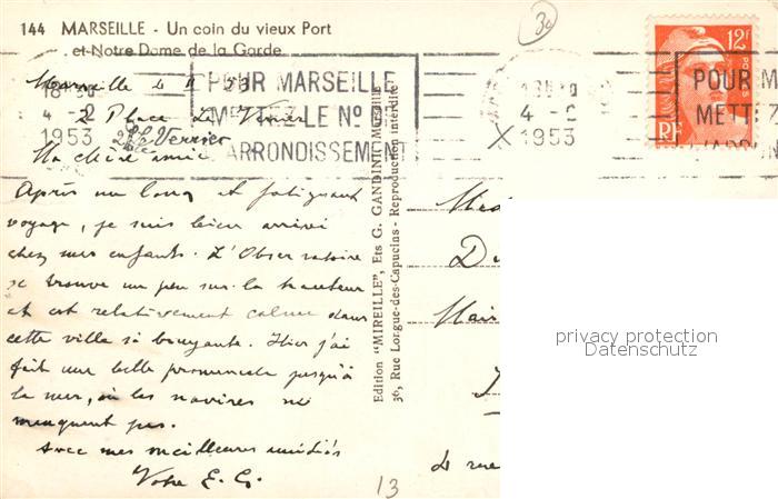 13493783 carte postale Marseille Bouches-du-Rhone Un coin du vieux Port et Notre Dame de la Garde postalisch gelaufen Erhaltung siehe scans [WerneD78] KatCode: 11170013313055