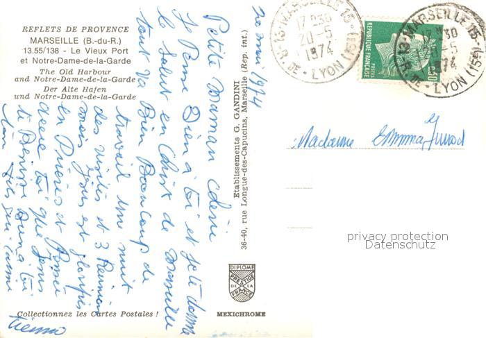 13478014 carte postale Marseille Bouches-du-Rhone Vieux Port Eglise Notre Dame de la Garde postalisch gelaufen Erhaltung siehe scans [FriedD77] KatCode: 11170013313055