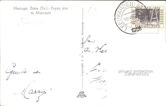 old postcard Marssum Heringa State Dr. Popta Slot Schloss postalisch gelaufen Erhaltung siehe scans