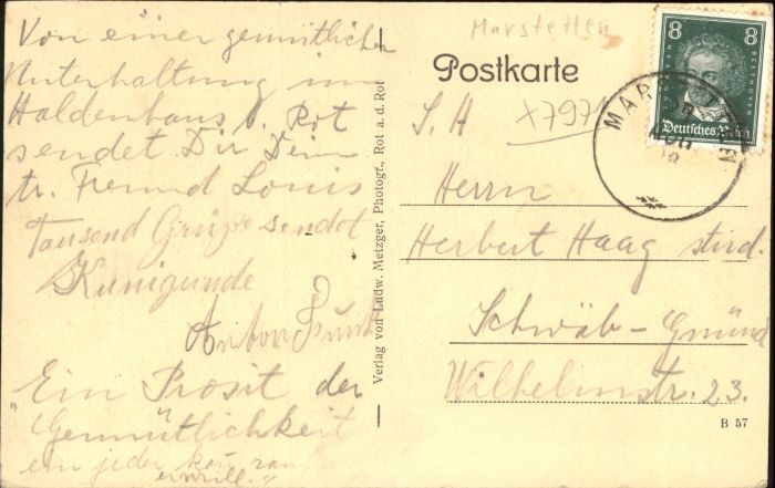40916012 Marstetten [handschriftlich] Gasthof zum Adler Haldenhaus KatCode 11110008436004