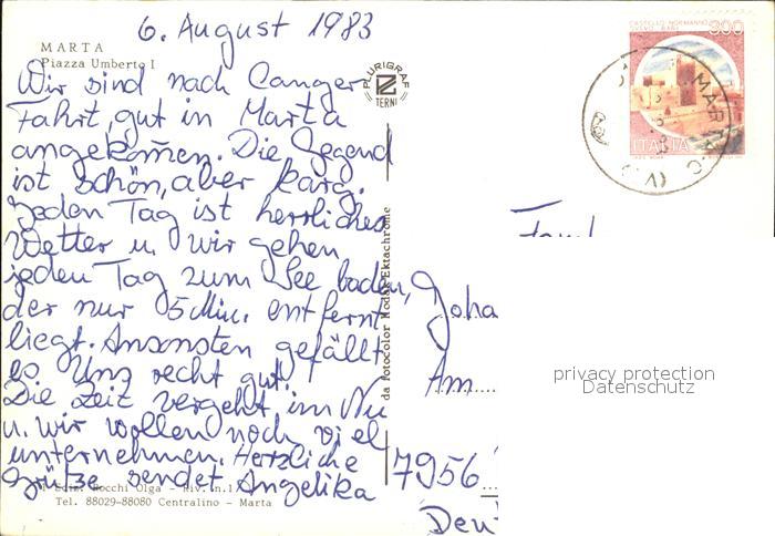 old postcard Marta Piazza Umberto I. postalisch gelaufen Erhaltung siehe scans