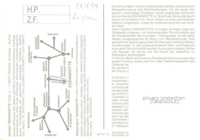 Martelltal Gasthof Enzianhuette postalisch nicht gelaufen Keine Postkarte (siehe scan) Erhaltung siehe scans [PaolaD17]