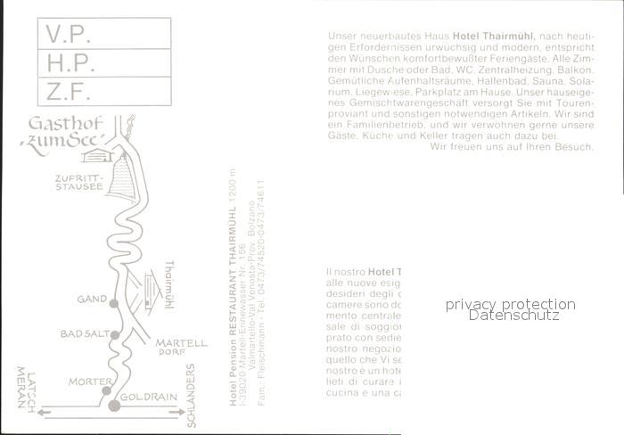 Martelltal Hotel Thairmuehl Hallenbad postalisch nicht gelaufen Werbekarte (keine Postkarte) Erhaltung siehe scans