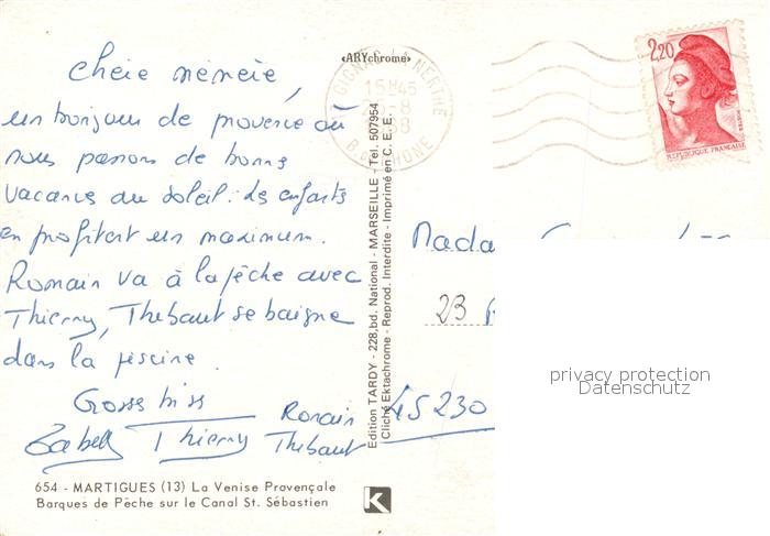 13520969 carte postale Martigues Barques de Peche sur le Canal St. Sebastien postalisch gelaufen Erhaltung siehe scans [LiesaD40] KatCode: 11170013413056