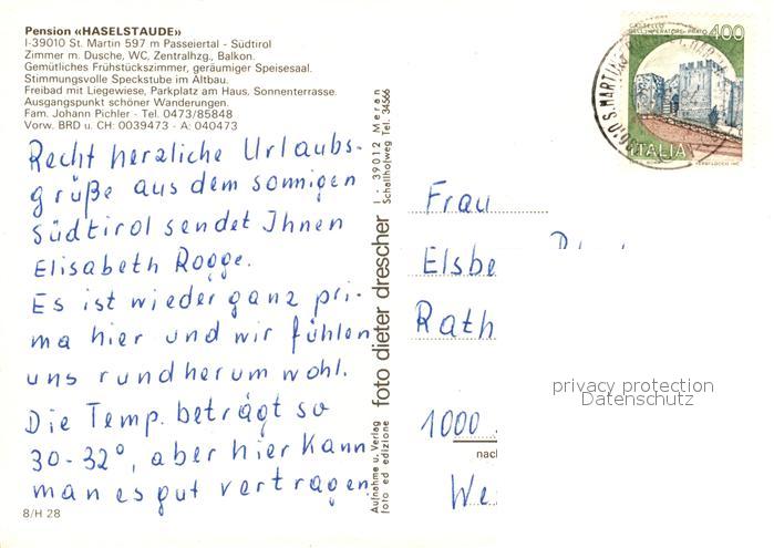old postcard Martin Passeiertal St Pension Haselstaude postalisch gelaufen Erhaltung siehe scans [KathaD81]