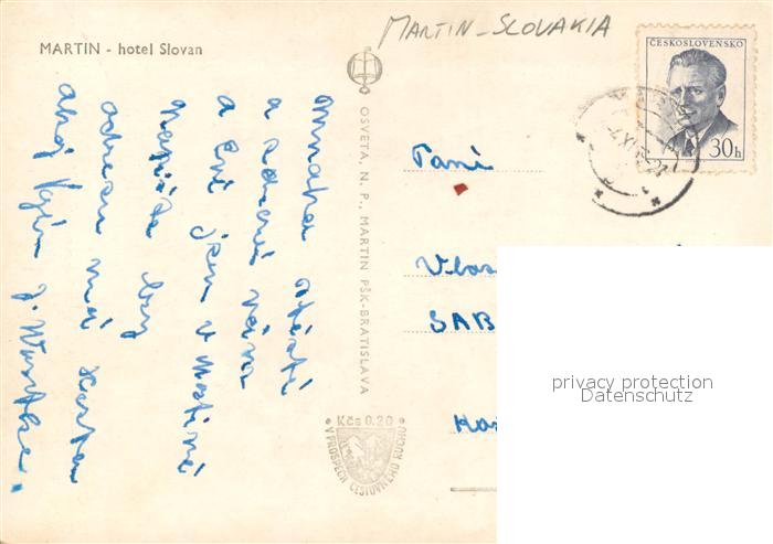 73729514 Martin SK Slovakia Hotel Slovan postalisch gelaufen Erhaltung siehe scans [WerneD78] old postcard Wern Katcode 11490