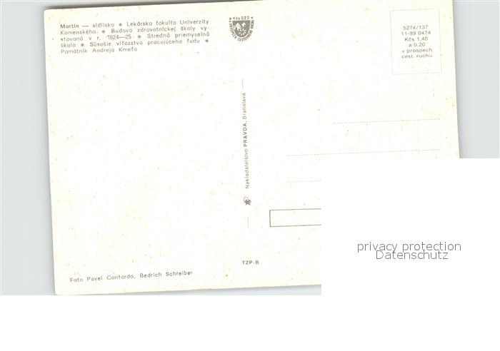 Martin Slowakische Republik Univerzity Komenskeho Budova zdravotnickej skoly vystavana Stredna priemyselna skola Pamaetnik Andreja Kmeta postalisch nicht gelaufen Erhaltung siehe scans [WerneD78 kt108box]