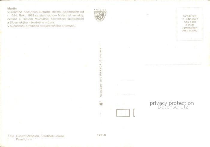 Martin Slowakische Republik Vyznamne historicko kulturne mesto Roku 1863 sa stalo sidlom Matice slovenskej V sucasnotsti stredisko strojarenskeho priemyslu postalisch nicht gelaufen Erhaltung siehe scans