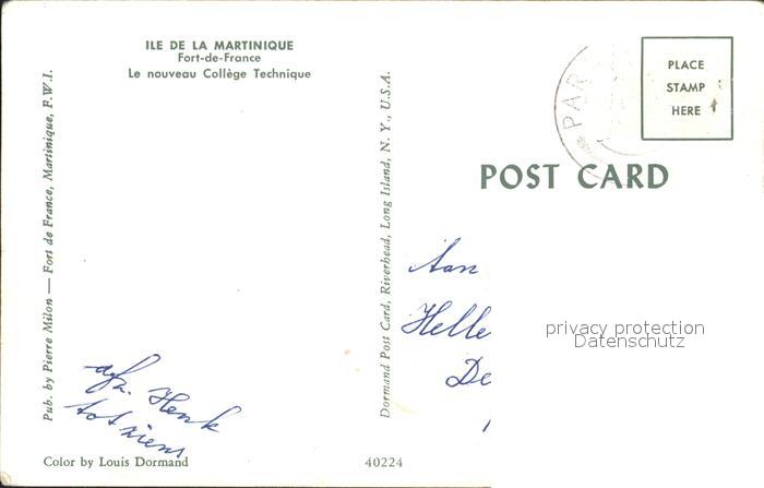 old postcard Martinique Ile de la Martinique College Technique postalisch gelaufen Erhaltung siehe scans