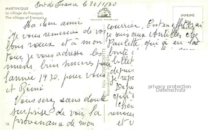 Martinique Le Village du Francois postalisch nicht gelaufen Erhaltung siehe scans [SanaeD93] Sana Katcode 16170