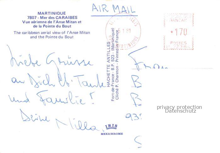 74093812 Martinique Mer des Caraibes Fliegeraufnahme Anse Mitan and the Pointe du Bout postalisch nicht gelaufen Erhaltung siehe scans [WerneD78] KatCode: 16170