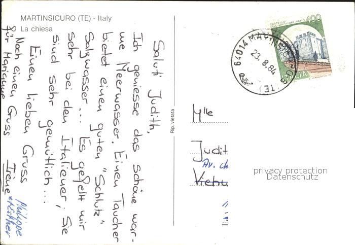 old postcard Martinsicuro Chiesa postalisch gelaufen Erhaltung siehe scans