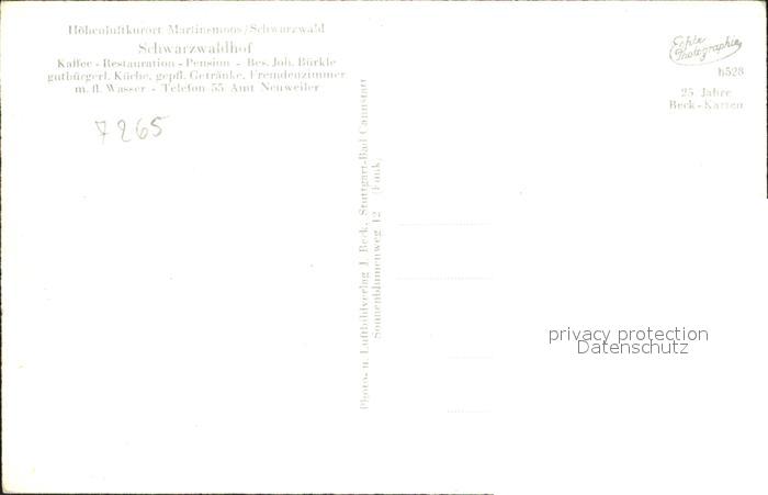 31706167 Martinsmoos Kaffee Restaurant Pension Buerkle postalisch nicht gelaufen Erhaltung siehe scans KatCode: 11110008235047