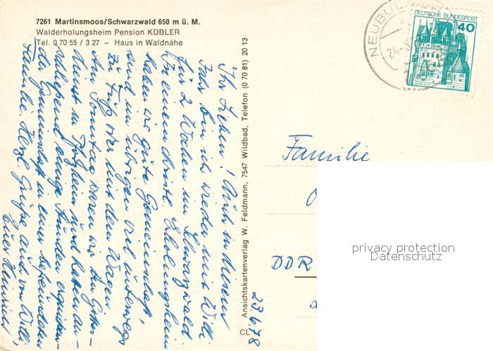 73646486 alte Postkarte Martinsmoos Walderholungsheim Pension Kuebler im Schwarzwald Fliegeraufnahme postalisch gelaufen Erhaltung siehe scans [FriedD77] KatCode: 11110008235047