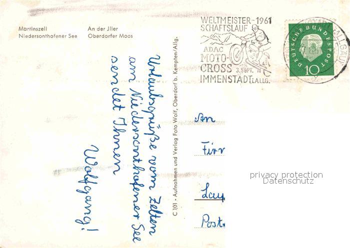 72811295 alte Postkarte Martinszell Allgaeu Niedersonthofener See Iller Oberdorfer Moos postalisch gelaufen Erhaltung siehe scans [NatalD47] KatCode: 11110009780143