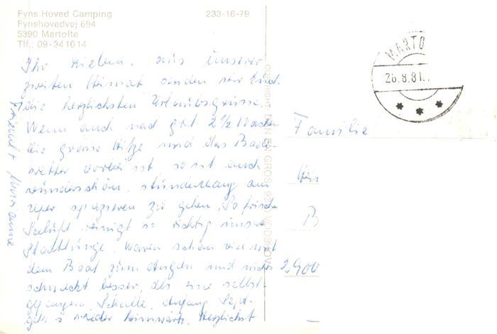 old postcard Martofte DK Fyns Hoved Camping postalisch gelaufen Fliegeraufnahme Erhaltung siehe scans [FriedD77]