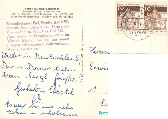 73886005 alte Postkarte Marxgruen Naila Pension Rossner Ponykutsche Kinderreiten postalisch gelaufen Erhaltung siehe scans [FriedD77] KatCode: 11110009475156